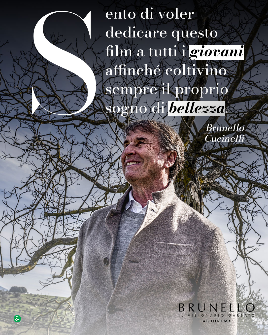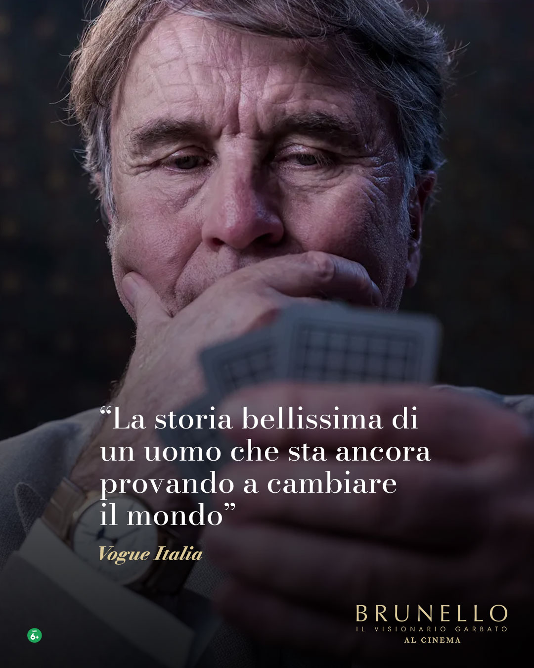 La vita dell’imprenditore e stilista Brunello Cucinelli diventa un film documentario: dall’infanzia in campagna al borgo di Solomeo, trasformato nel simbolo di un capitalismo umanistico. Un ritratto intimo e ispirazionale che mostra come il successo possa convivere con responsabilità sociale e armonia. Una storia di eleganza, pensiero e futuro possibile diretta dal Premio Oscar® Giuseppe Tornatore, con le musiche di Nicola Piovani.